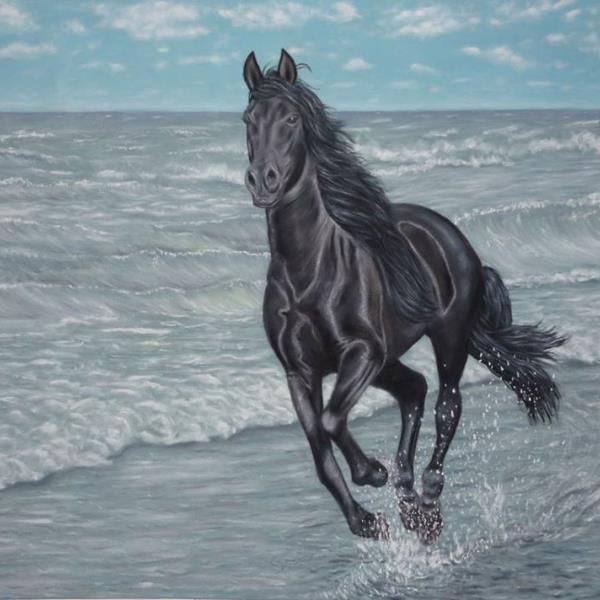 "Caballo negro en la playa